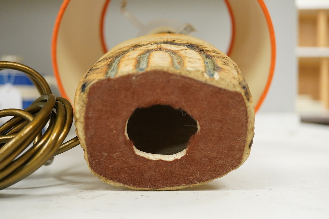 Lot 1311 , Bernard Rooke, a small studio pottery lamp with incised decoration and shade, 26cm high