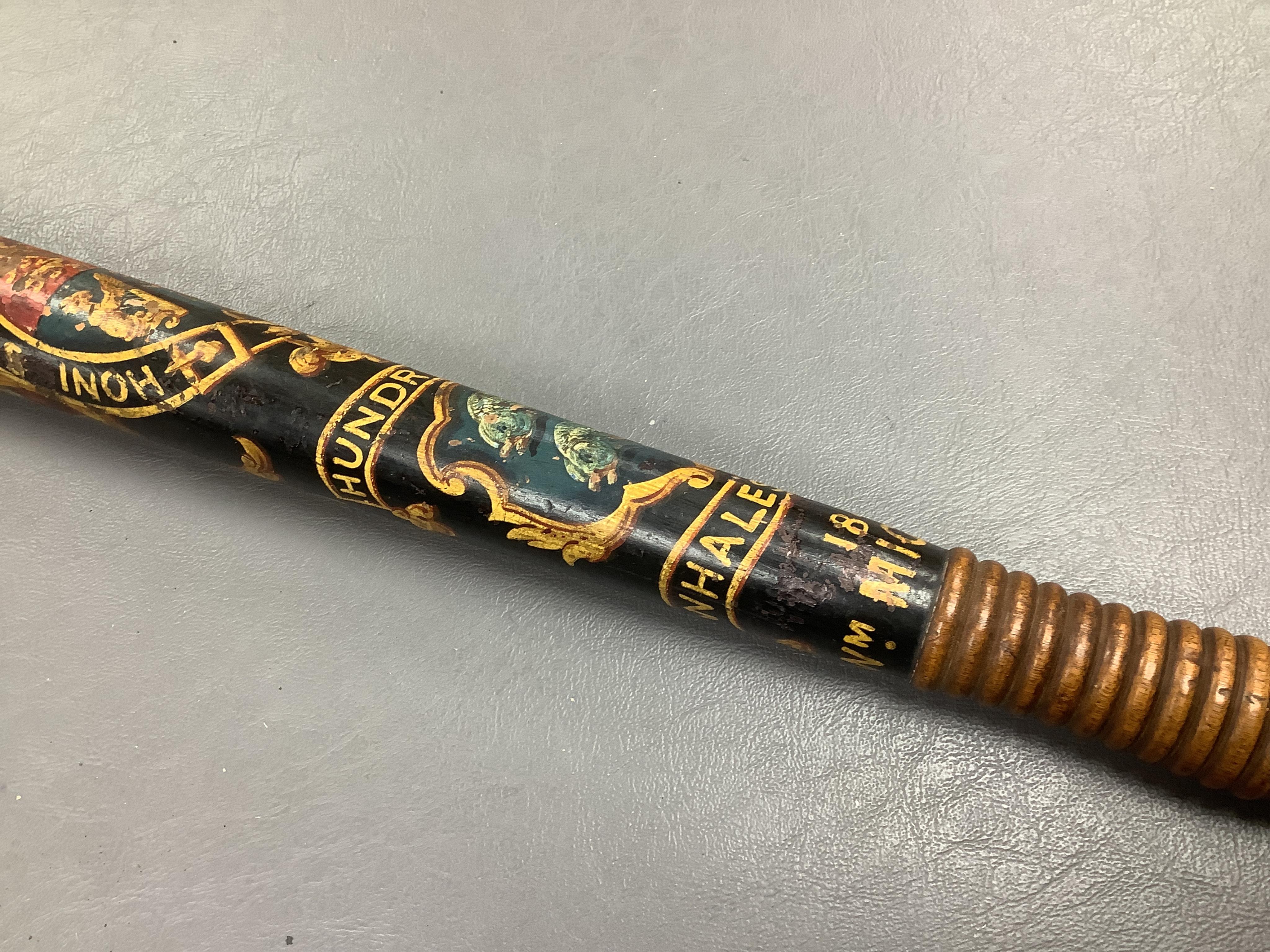 Brighton interest - a rare early Victorian painted police truncheon, inscribed ‘Hundred of Whalesbone, Wm. Mighell 1844’, together with a reproduction truncheon.