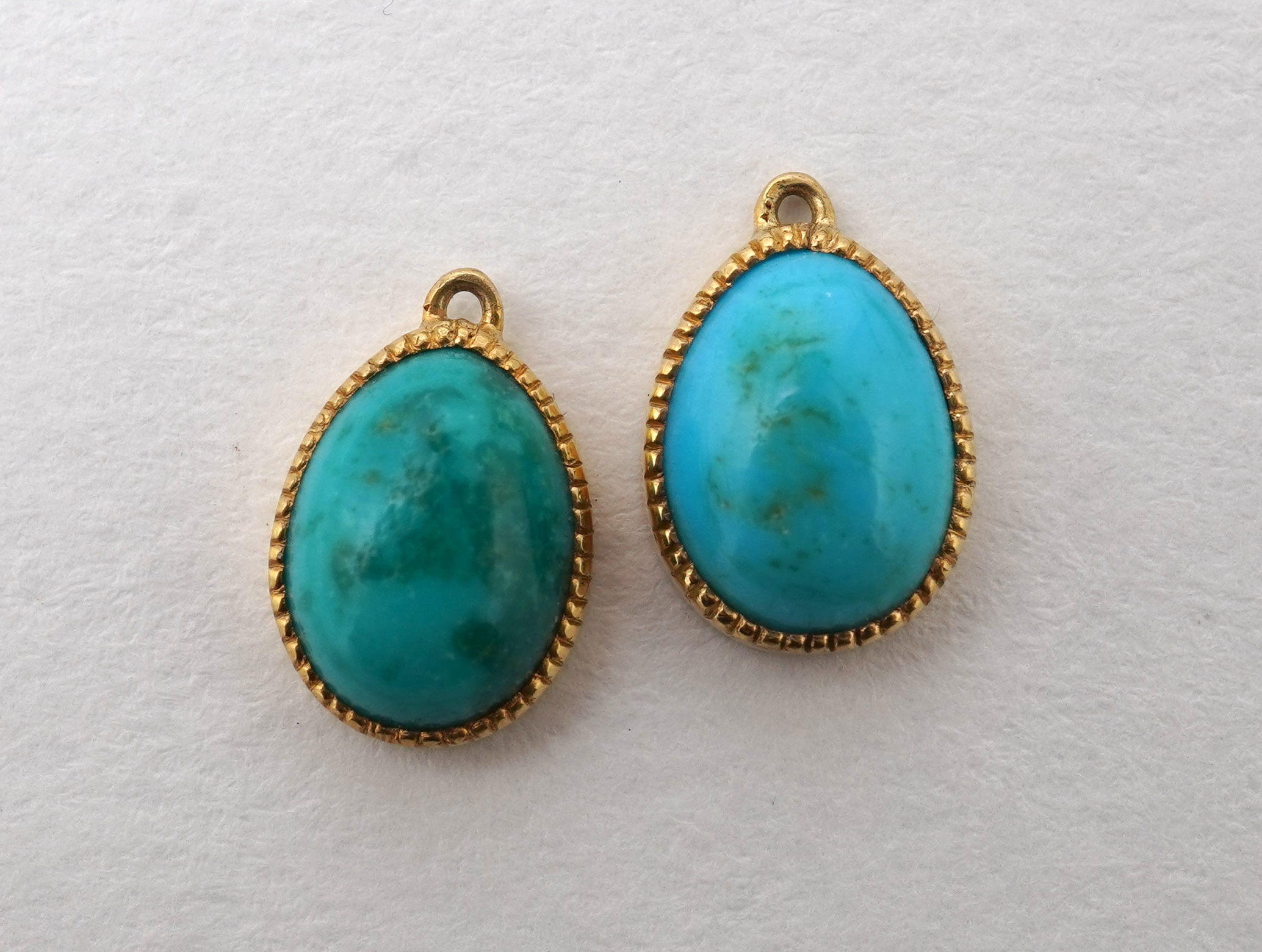 A collection of coral and turquoise jewels, comprising: a coral bead necklace, beads approximately 6-7mm, to a gold spherical clasp, necklace length 102cm, clasp stamped 375, gross weight approximately 61 grams; a pair of earrings of knotted design, set with coral cabochons, length 3.4cm each, hook fittings; and a pair of quatrefoil turquoise and rose-cut diamond earrings, length 1.3cm each, screw fittings, together with a pair of detached pear-shaped cabochon turquoise drops