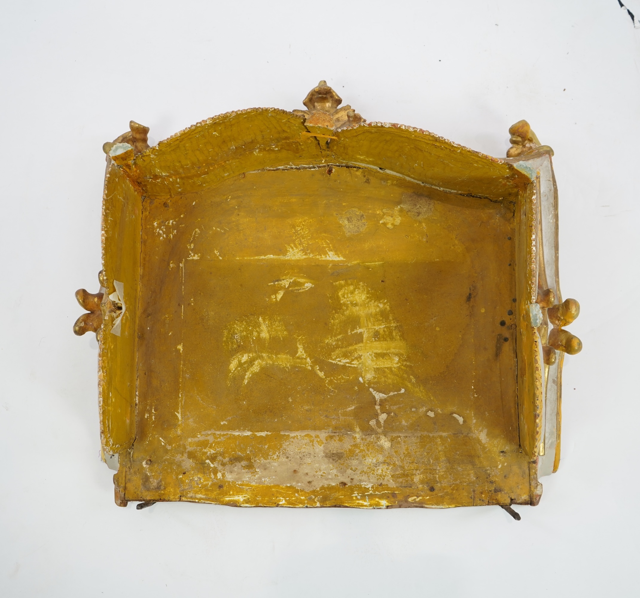 An Italian gilt wood and cream painted canopy, 19th century, carved with swags and tassels the serpentine shaped frieze with scrolled leaves, approximately 69cm wide