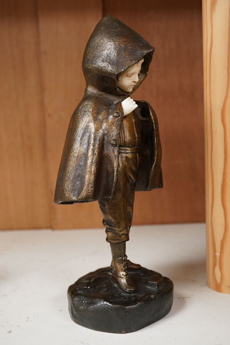 An Art Deco bronze and ivory figure of a boy wearing a cloak, signed Chopard, 22cm high CITES Submission reference