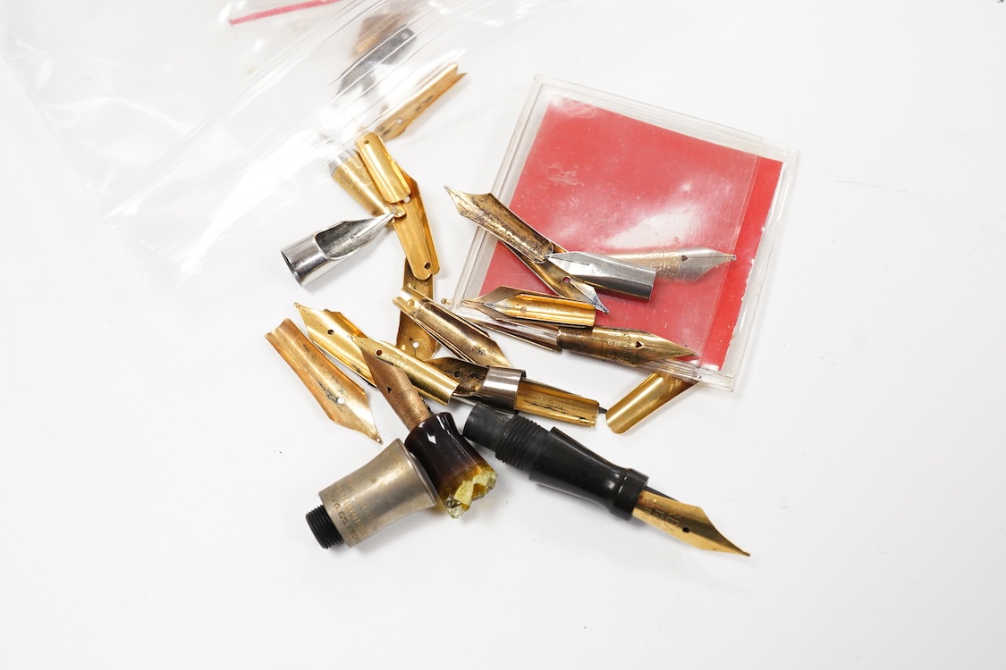 A selection of fountain spares to include levers, blind caps and nibs, some gold
