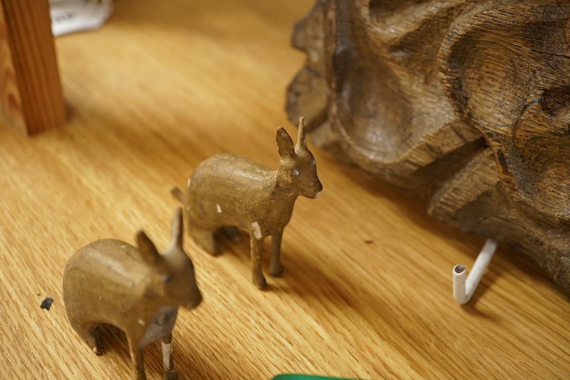 Lot 462 , A carving of a Tudor rose-30cm wide, a brass bound box, small brass box, two eye baths, a green malachite ashtray etc