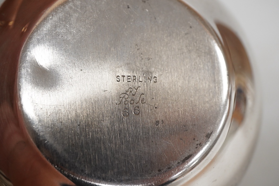 An Italian pierced 900 standard white metal bottle coaster, diameter 99mm, together with a sterling cream jug and a small 925 bowl, 9.9oz.