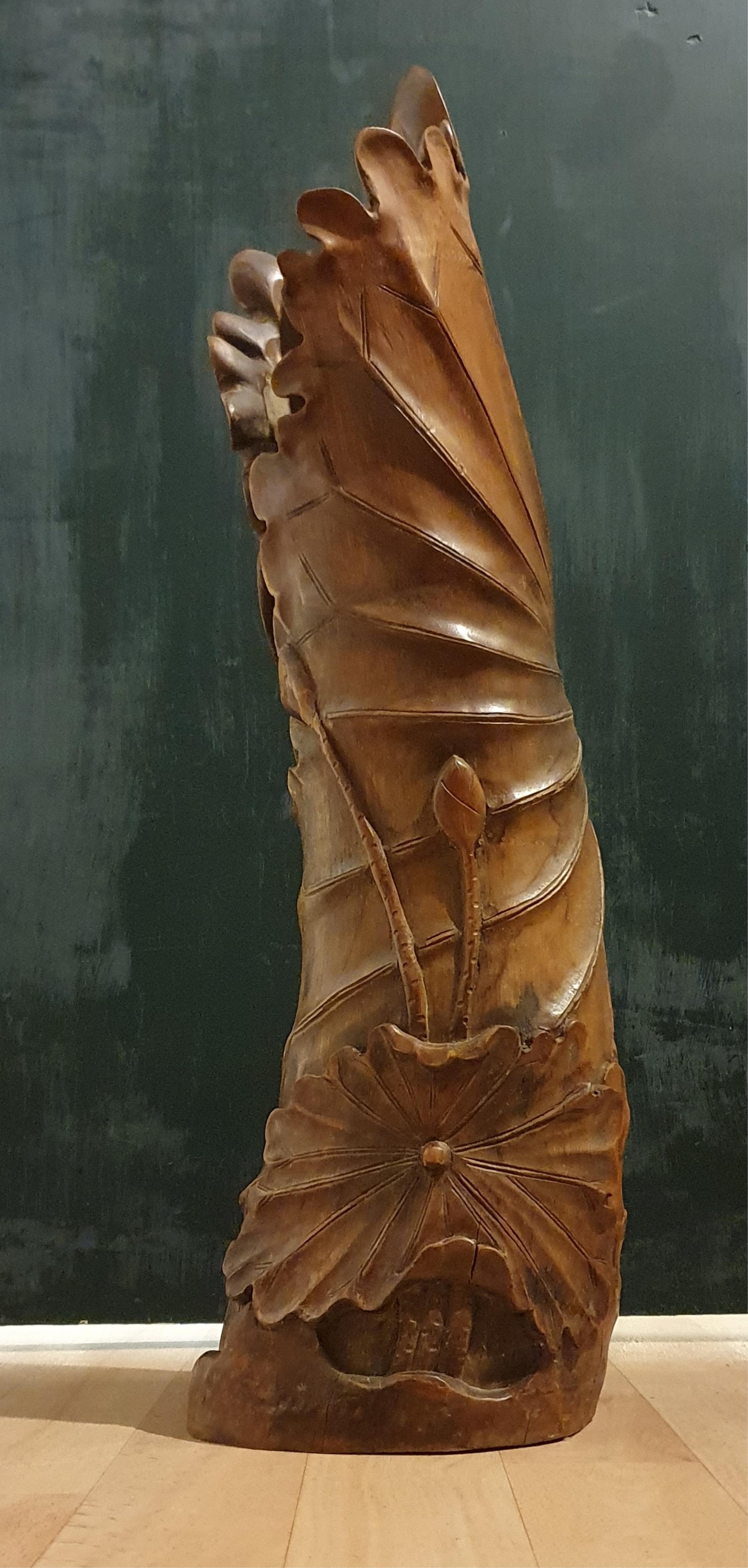 Lot 1400 , A Japanese bronzed antimony dish and a large carved bamboo ‘lotus’ vase - 61.5cm high. (2)
