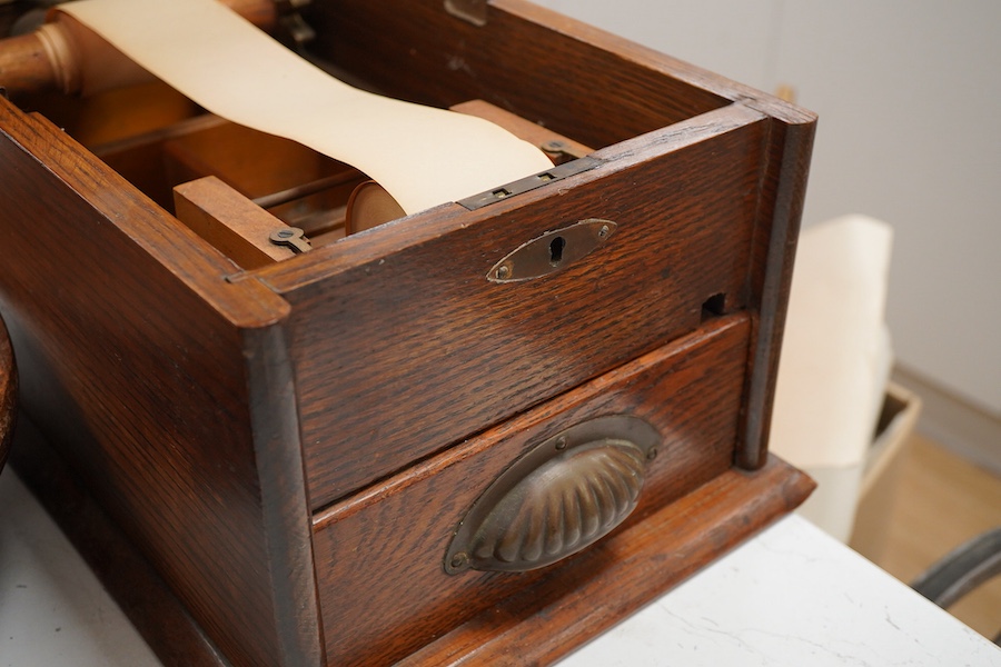 Lot 1292 , A late Victorian oak till, a mazer bowl - 57cm long, and a Huntley and Palmers novelty biscuit tin