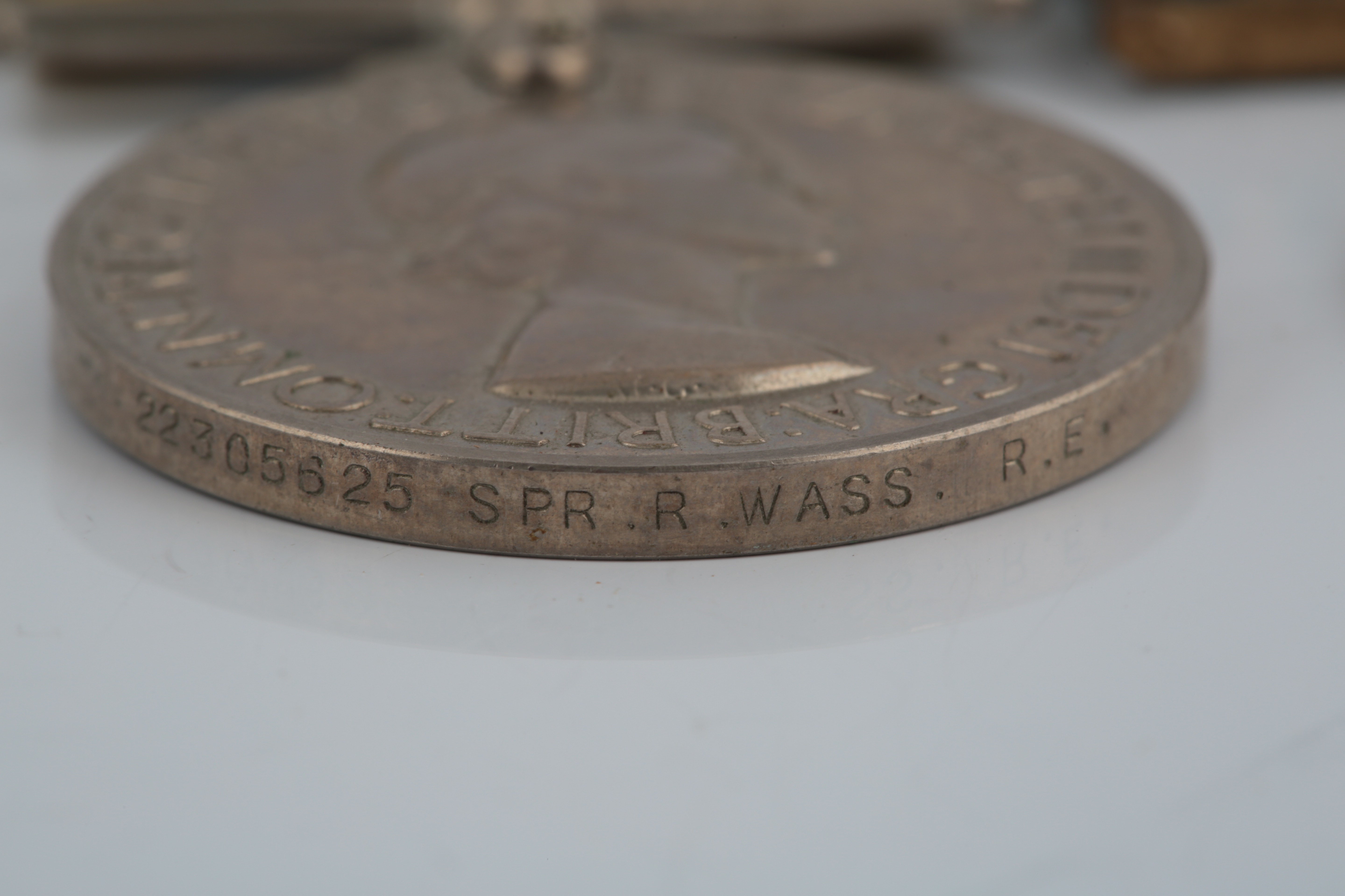 a Korea medal pair awarded to 22305625 SPR. R. Wass. R.E.,