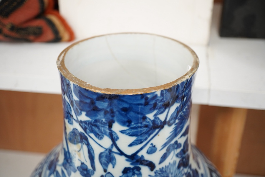 A large Chinese blue and white ‘birds amid foliage’ vase, late 19th century, neck cut dow, 54cm