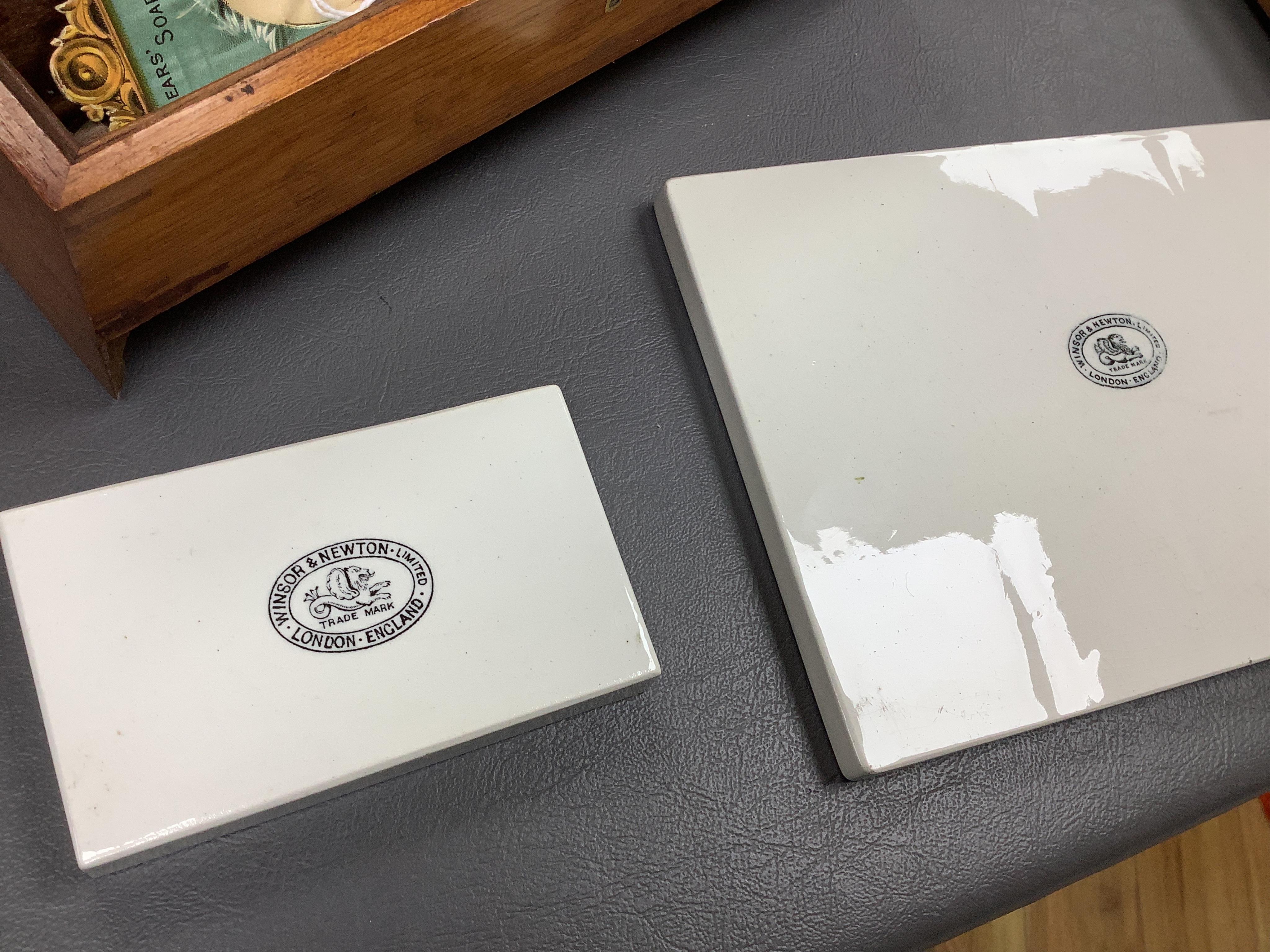Lot 461 , A 19th century Winsor and Newton one drawer mahogany paint box, with contents, 23cm wide x 18.5cm deep