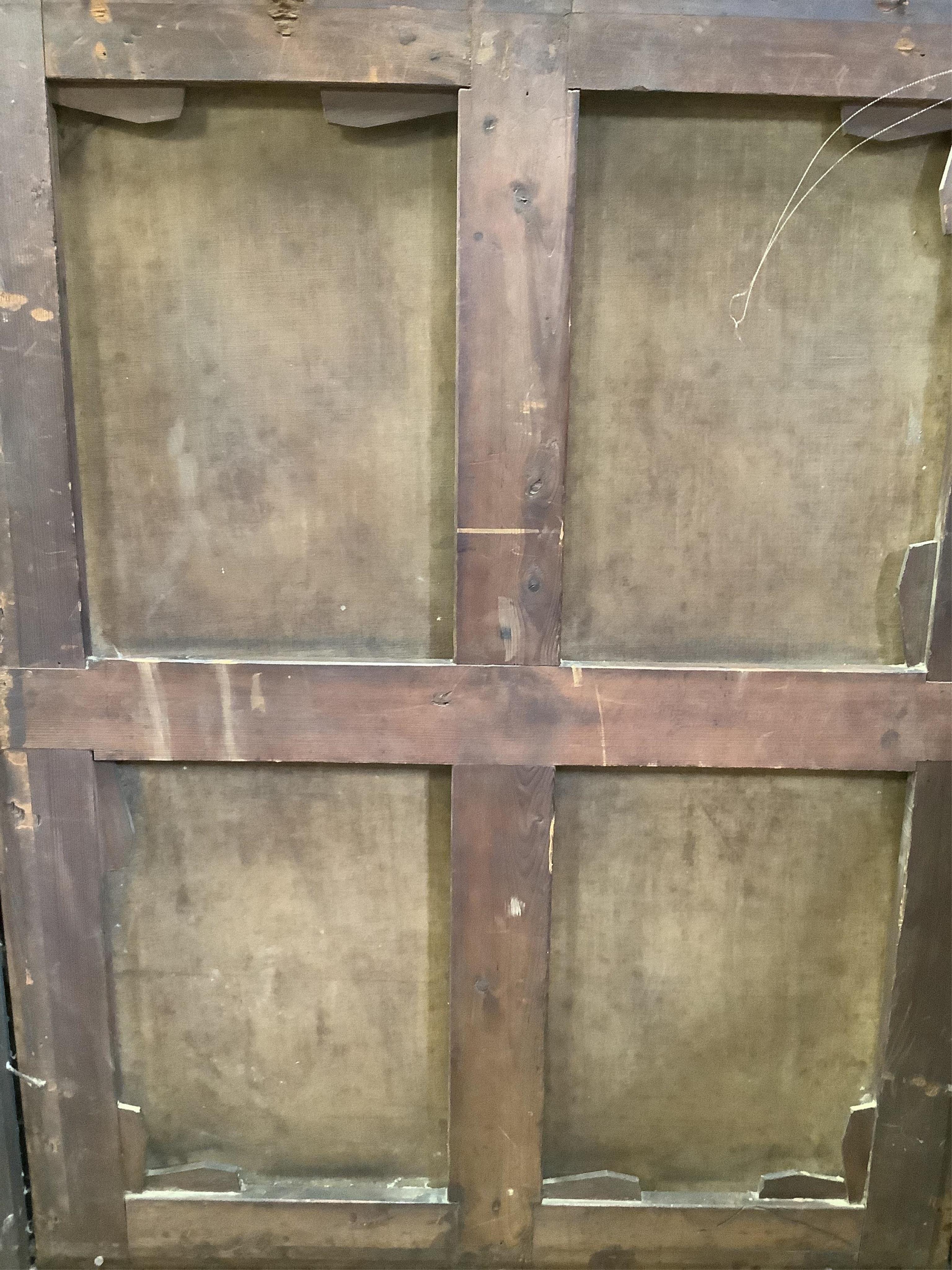 Not cleaned, re-lined or re-stretched; two small areas either side of her forehead that are dis-coloured or rubbed or varnish-free; uniform craquelure. Unknown whether the moulded gilt-gesso frame is original to the work. Images 10 and 11 show several screws driven into the back of the frame, presumably to attach the applied sections of gesso.