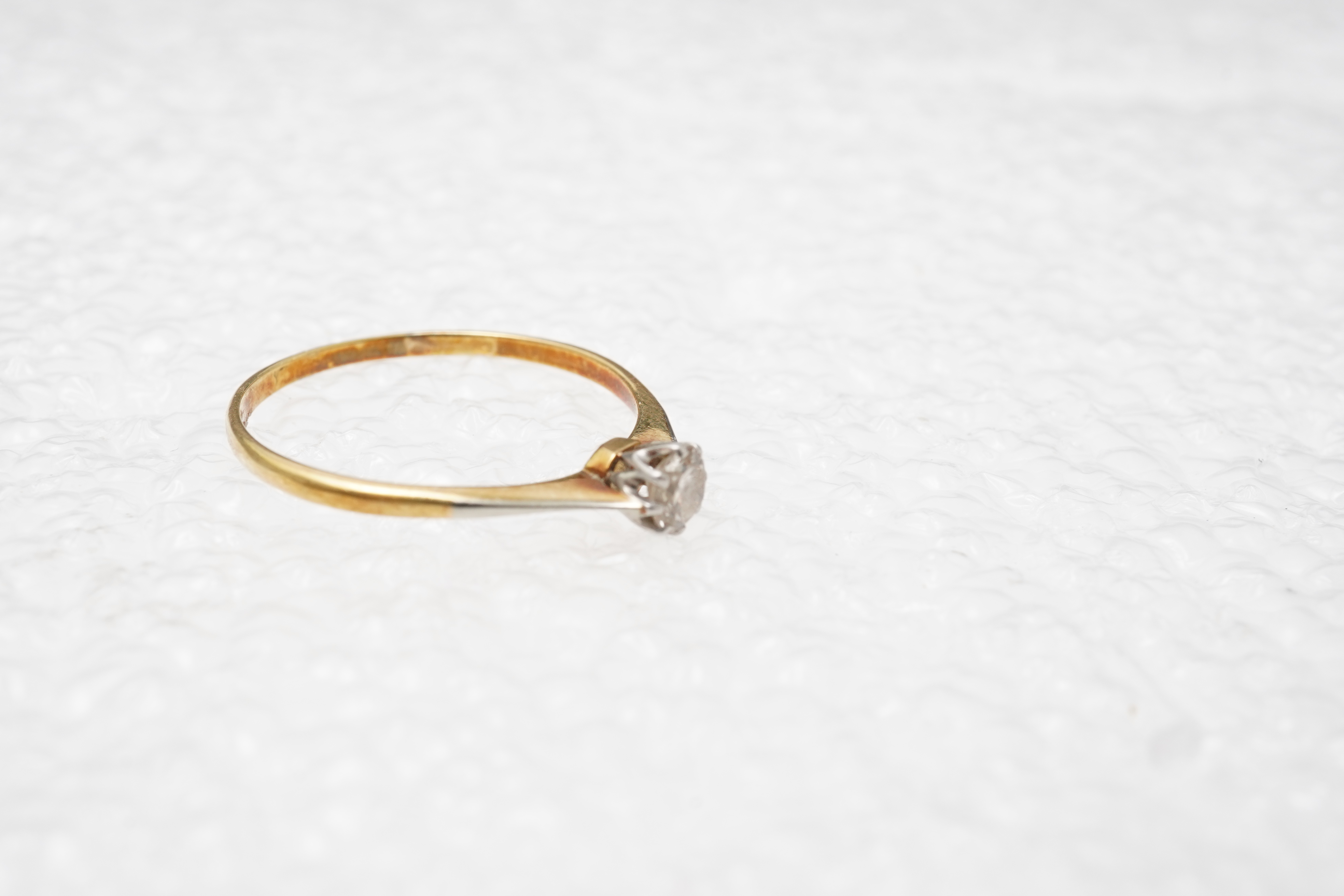 A small solitaire diamond ring, early 20th century claw-set with a circular-cut diamond weighing approximately 0.15 carats, mounted in gold, size O