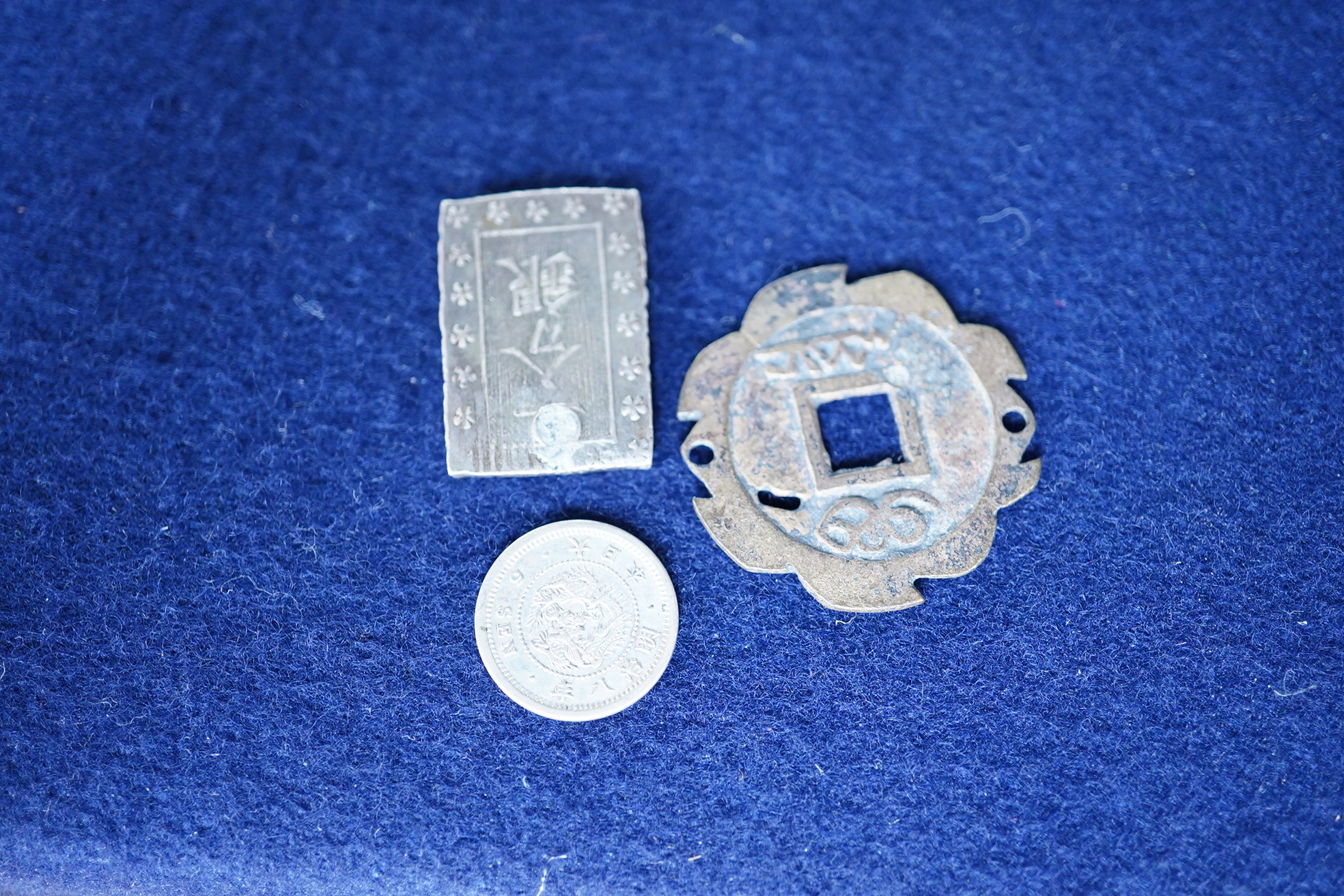 Lot 1980 , Chinese and Japanese coins, 16th to 20th century, including Chinese cast coins, Ming to Qing dynasty, Japanese Kan’ei Tsuho, in a rosewood box