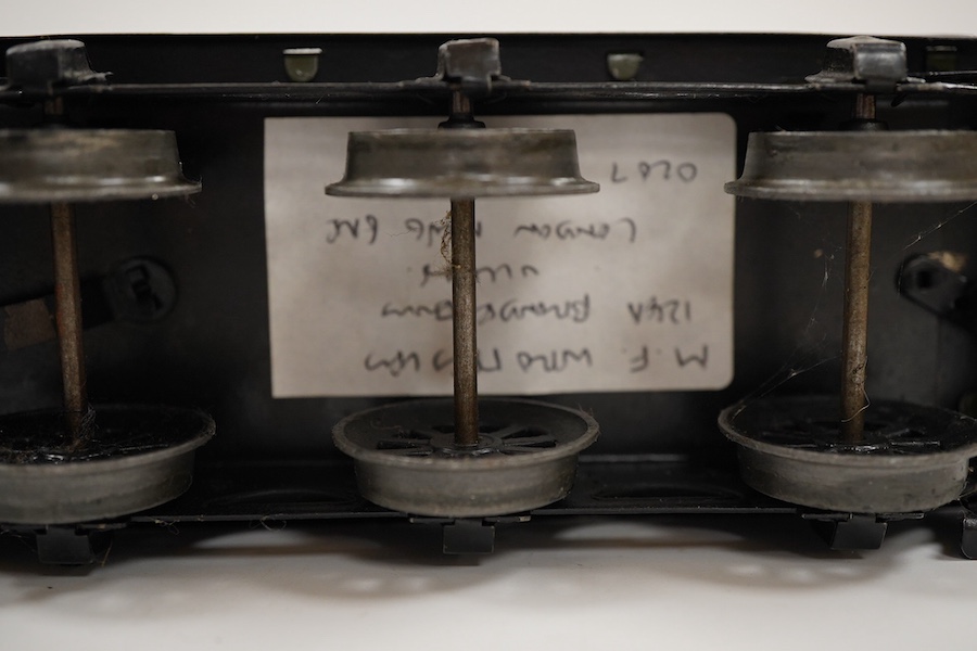 An 0 gauge Bassett-Lowke clockwork tinplate BR 4-4-0 tender locomotive, Prince Charles 62453, in dark green livery with orange and black lining and original clockwork mechanism