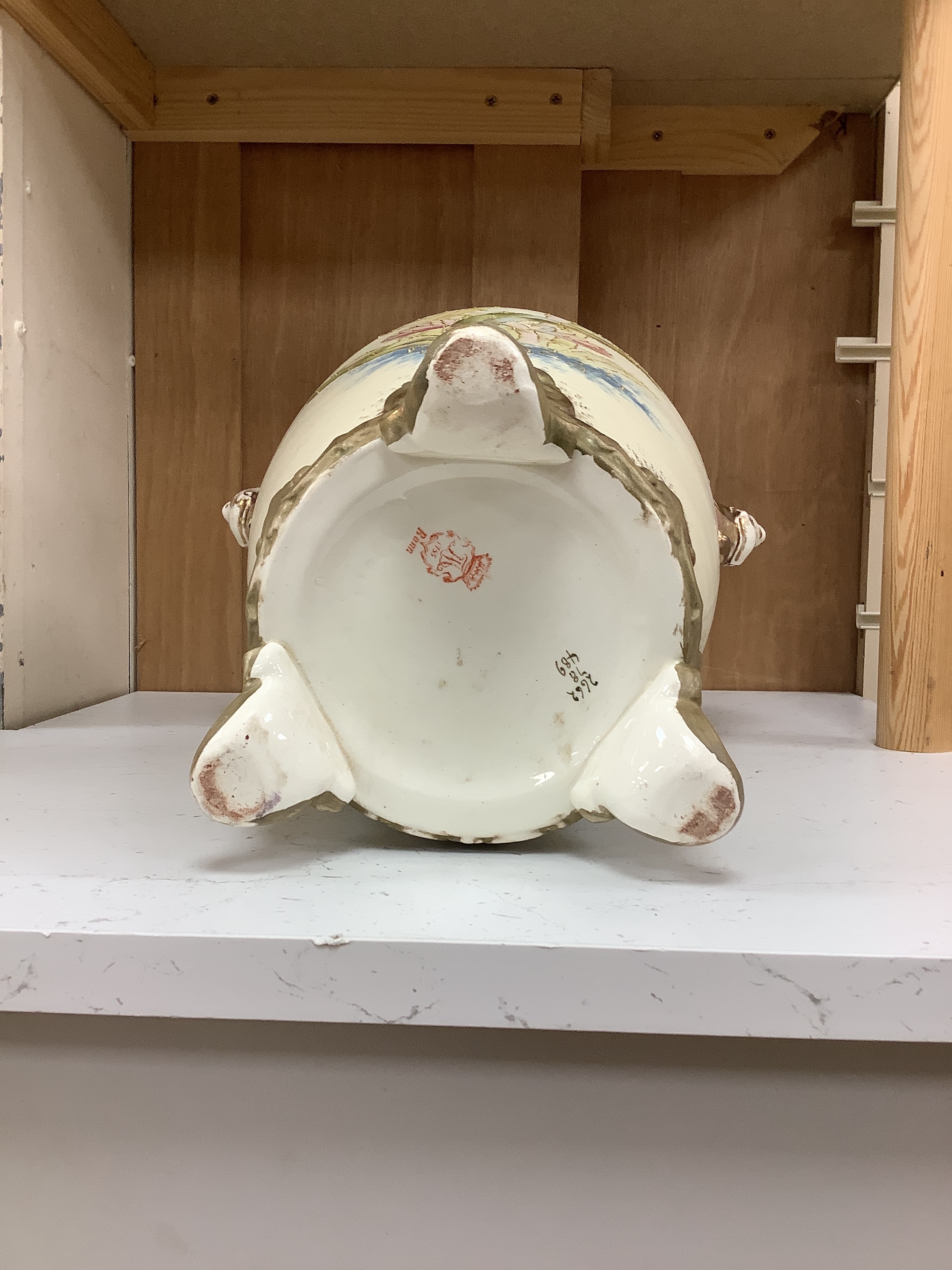 Lot 1178 , A pair of early 20th century Royal Bonn two handled floral decorated vases, 44cm high