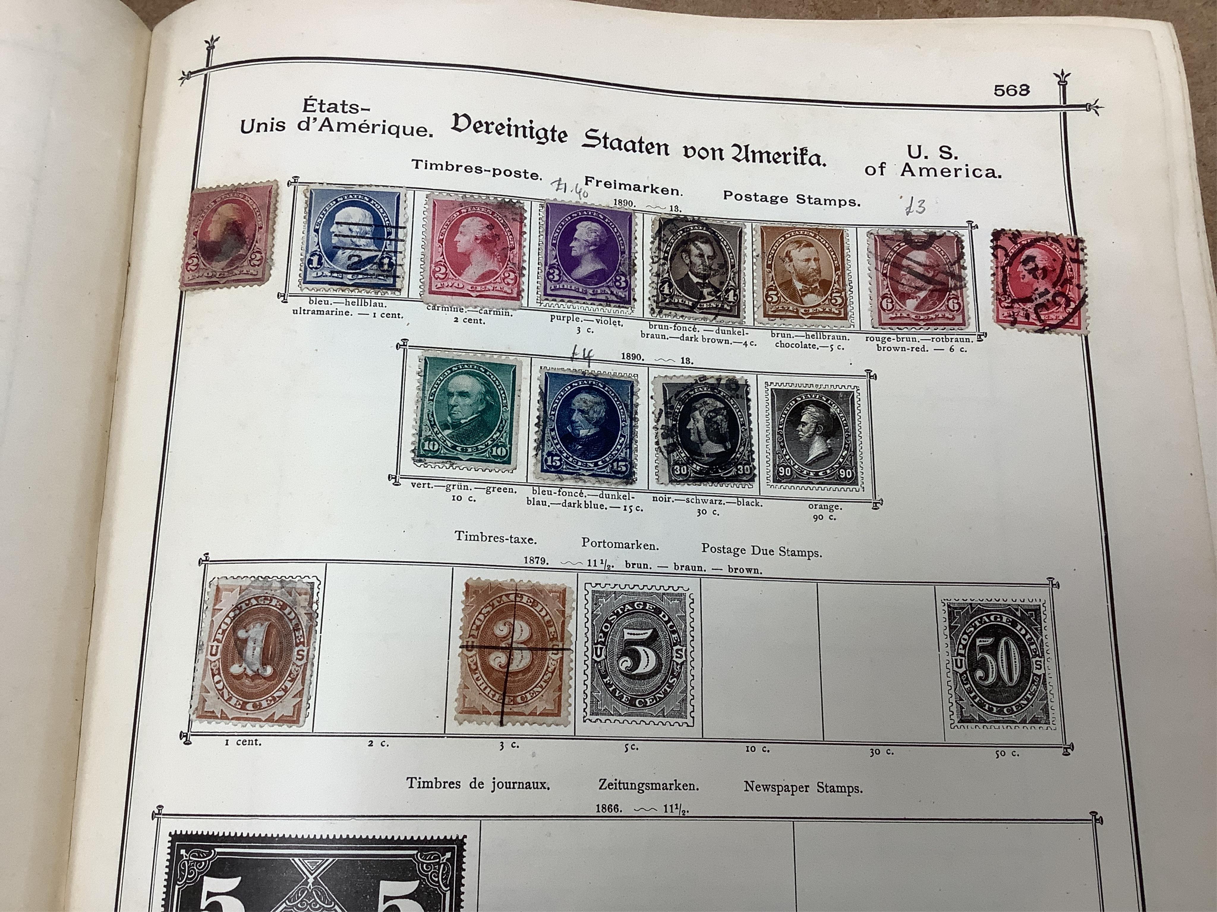 Lot 2160 , A late 19th century German produced postage stamp album entitled ‘The International Postage Stamp Album’, 16th edition, containing stamps issued from 1840 to 1890, incomplete, but with a selection of world stamps includi