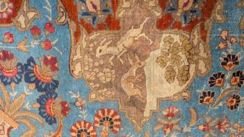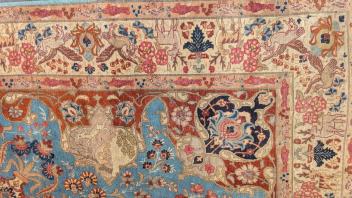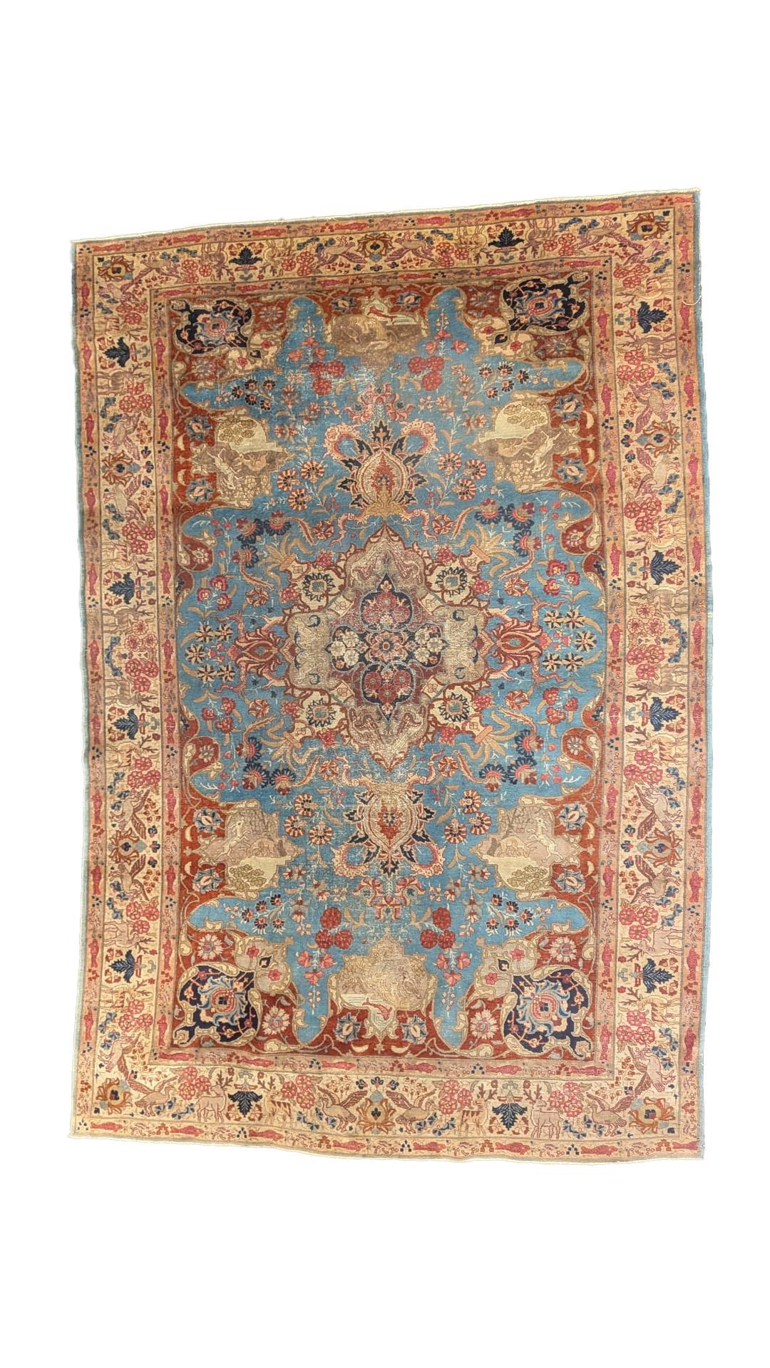 Lot 221 , A Tabriz pictorial pale blue ground carpet