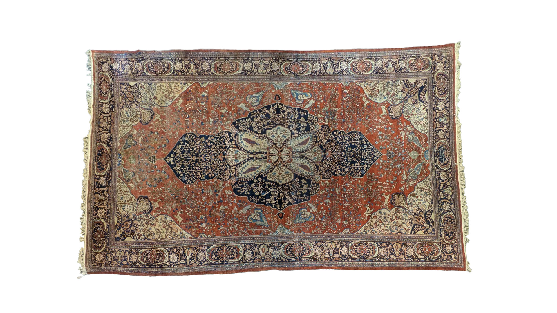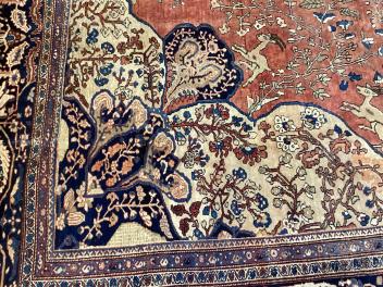 An antique Sarouk brick red ground carpet
