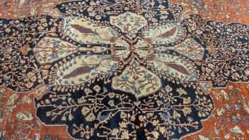 Lot 260 , An antique Sarouk brick red ground carpet