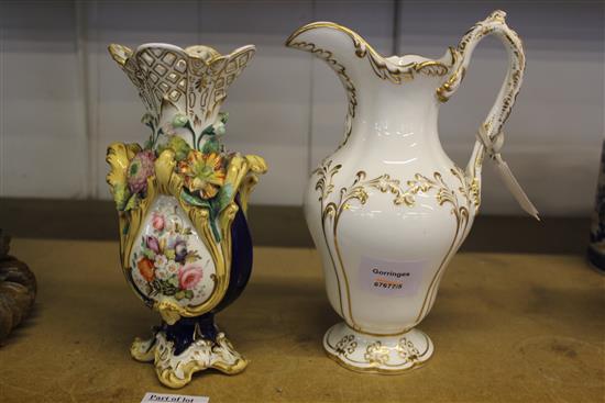 Large Coalport ewer, Rococo revival period, c.1850 & Coalport flower encrusted vase(-)