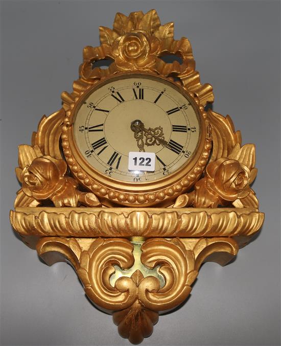 Gilt carved wood cartel clock with battery driven mechanism (Swiss reform movement)