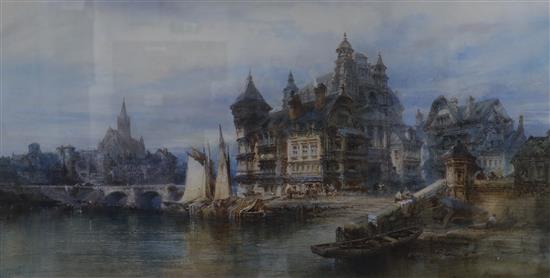 Paul Marney, watercolour, Blois, France, signed 58 x 107cm