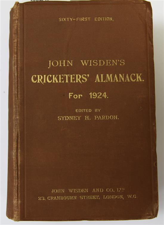 Lot 40 , A Wisden Cricketers Almanack for 1924, original hardback binding