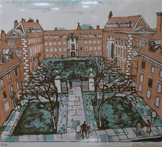 Julian Trevelyan limited edition print, College quad, signed in pencil 61/70, 41cm x 47cm