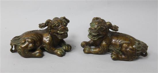 A pair of Chinese bronze lion-dog figures