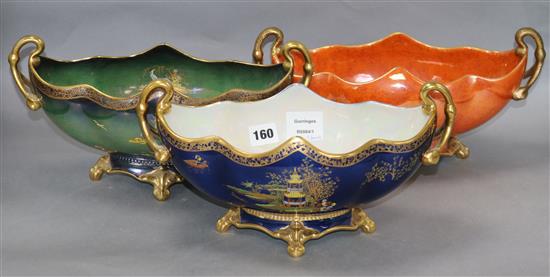 Three Carlton Ware lustre navette shaped bowls length 32.5cm