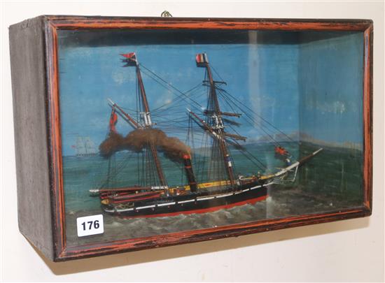 Lot 176 , A Victorian diorama of a steam yacht, label to reverse G. Cooper, 12 Henry St. Brighton overall 46.5cm