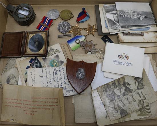 A WWI group of three medals to Private C Berwick Army cycling corps, related ephemera plus a WWII group of medals etc