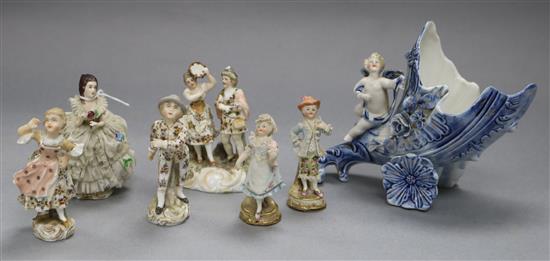 A small horn of plenty figure and six others tallest 13cm