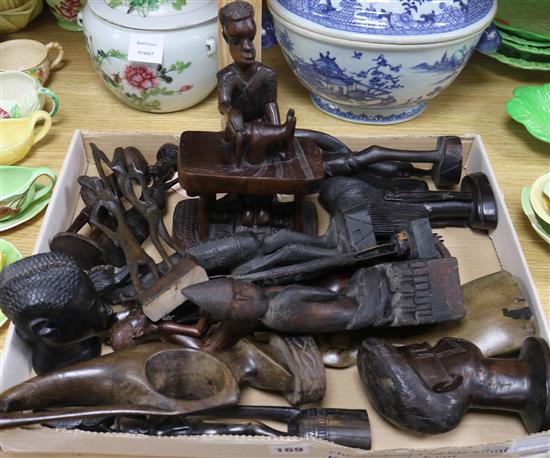 A quantity of small Makonde carved tribal busts and figural carvings