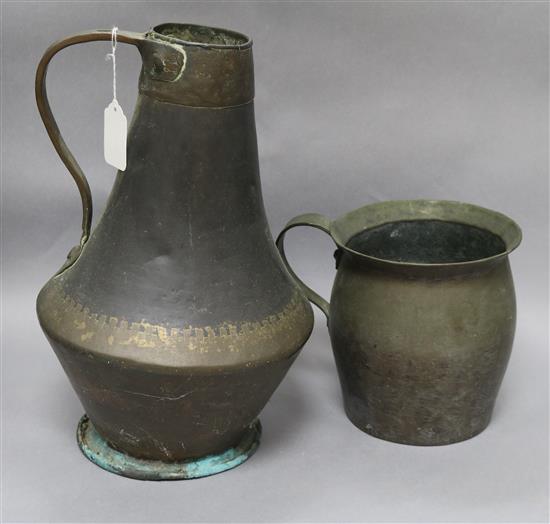 Two Middle Eastern copper jugs tallest 36cm