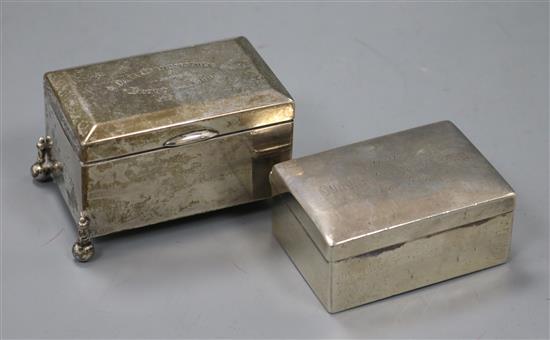 A late Victorian Australian white metal stamp box by Brunkhorst and one other similar box.