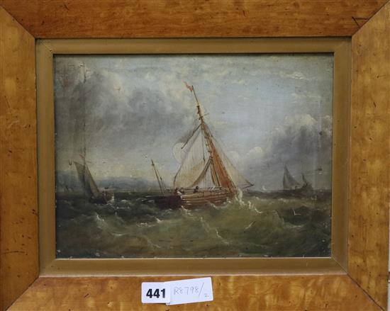 Lot 441 , A 19th century English School, oil on canvas, fishing boats off the coast 22 x 30cm