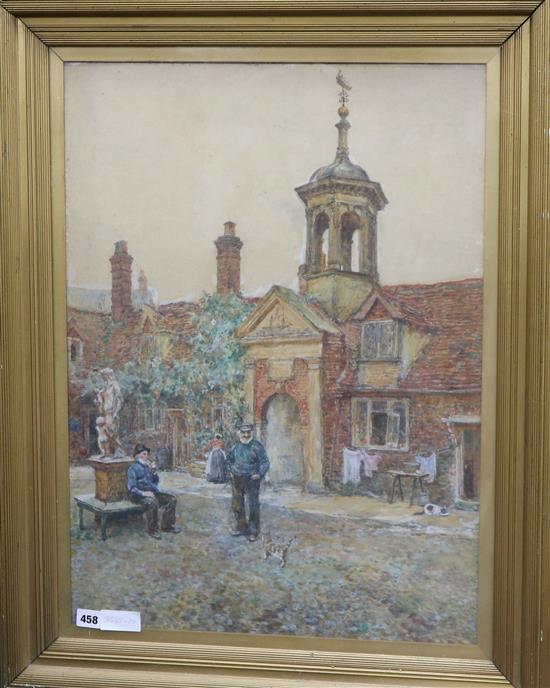W. B. Bennett, watercolour, Old salts in a courtyard, signed and dated 1919 69 x 50cm