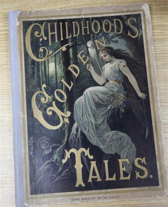 Childhood's - Childhood's Golden Tales, folio, original cloth with pictorial front board, with 12 coloured plates, some page edges repaired, Dean and Son, London [c,1890]
