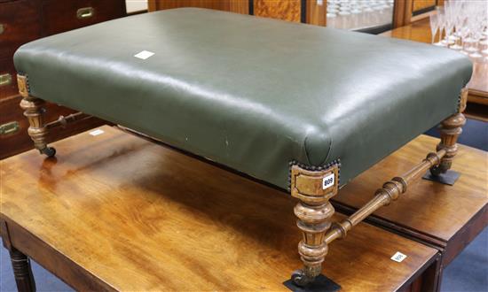 A Victorian green leather upholstered stool W.106cm