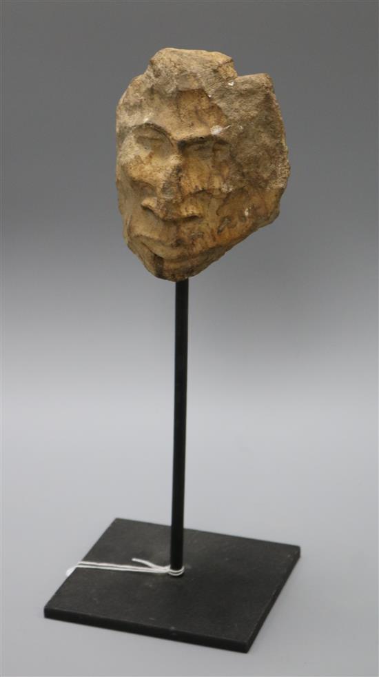 A Folk Art stone carving of head on stand