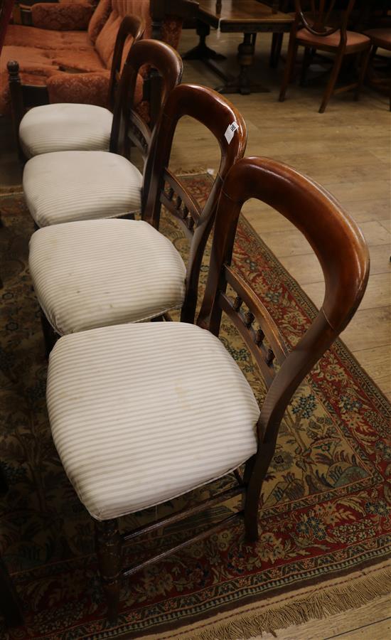 A set of four Victorian mahogany salon chairs, with balloon backs and turned underframes