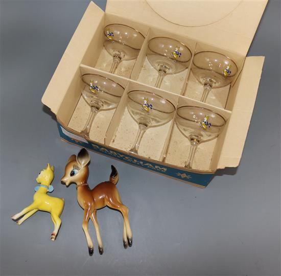 Lot 149 , A boxed set of six Babycham glasses and two Bambi models