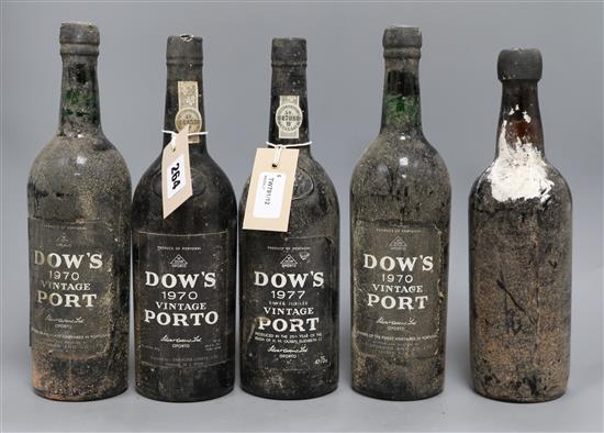 Five bottles of Dows vintage port, 1963, 1970 (3) and 1977