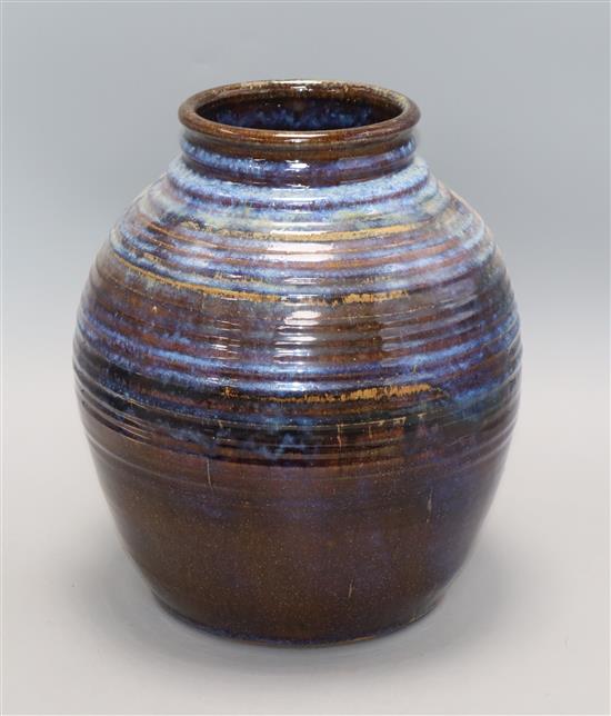Gill Meadows. A flambe studio stoneware globular vase height 30cm