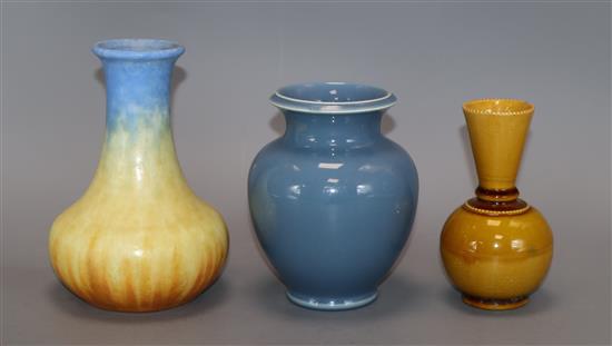 An Ault pottery vase, a Ruskin type vase and Dresser inspired vase tallest 15cm