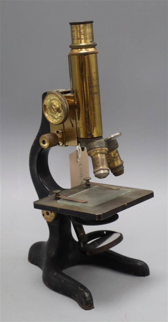 A Leitz lacquered brass and cast iron microscope