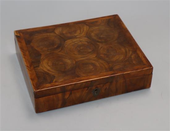 Lot 125 , A rectangular laburnum oyster veneered glove box width 23cm