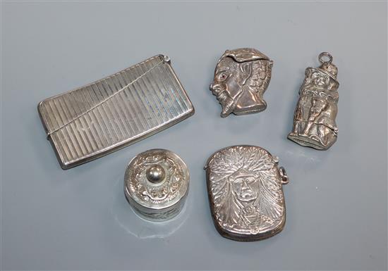 Lot 651 , A silver card case and mixed modern novelty sterling vestas.