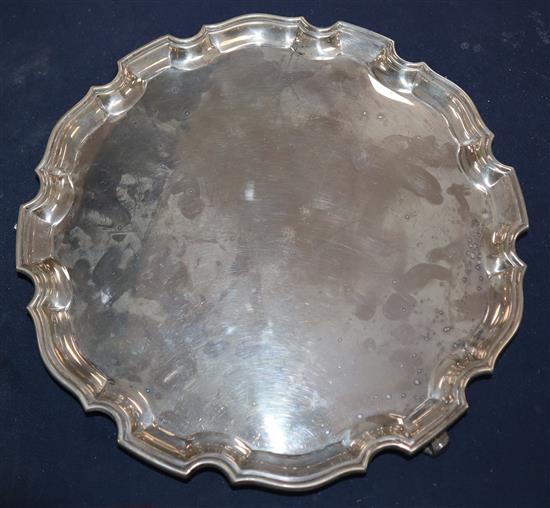 A George V silver salver with pie crust border, Birmingham, 1931, 30.8cm, 31 oz.