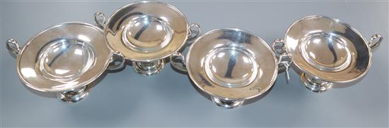 A set of four Edwardian silver two handled pedestal small dishes, London, 1903, 20.5 oz.